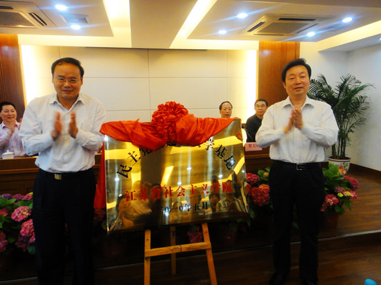 5月28日,我院在江阴党派机关大楼举行";民主党派建设教学基地";揭牌仪式。省委统战部副部长、院党组书记、副院长周和平,江阴市委副书记赵国权,江阴市政协副主席、市委统战部部长曹恩华出席揭牌仪式。副院长黎玉林主持了仪式。