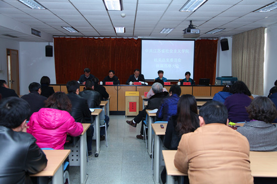 对于今后进一步加强和改进院机关党建工作,他要求,一要深入学习贯彻党的十八届三中全会和习近平总书记系列重要讲话精神,推进学习型机关党组织建设。二要以服务科学发展、服务统战工作、服务广大学员、服务全体党员为重点,推进服务型机关党组织建设。要围绕中心、服务大局,要带头落实中央和省委关于改进工作作风密切联系群众的规定要求,要做好党的群众路线教育实践活动收尾工作,要继续推进领导干部下基层";三解三促";活动。三要以提高创造力、凝聚力、战斗力为重点,推进创新型机关党组织建设。要进一步加强机关党的基层组织建设,要积极发展机关党内基层民主,要进一步推进机关党群共建工作,要加强机关党总支自身建设。