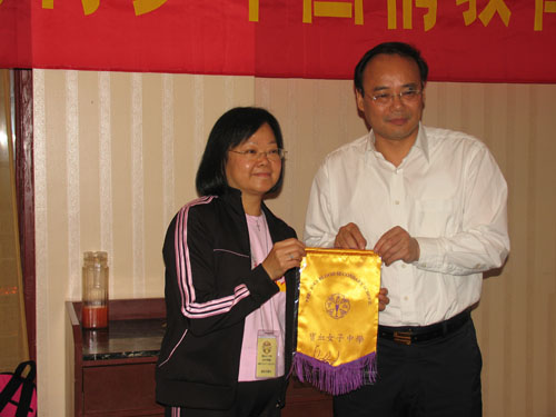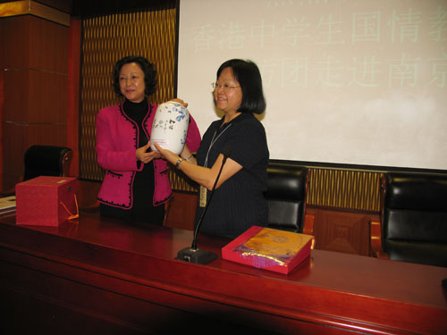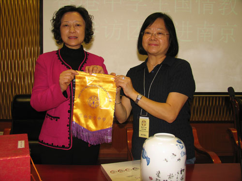 香港宝血女子中学潘校长向江苏省海外联谊会赠送?;?/span>