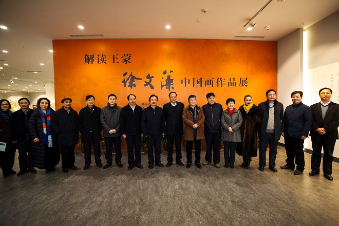 1月16日下午,我院";江苏书画家联谊会创研中心";和";《雅集》笔会中心";在常州西太湖美术馆正式揭牌。同时,作为";江苏书画家联谊会创研中心";发韧之举的";解读王蒙—;—;徐文藻中国画作品展";正式开展。省政府原副省长、省人大常委会原副主任李全林,省委统战部副部长、院党组书记周和平,常州市委常委、副市长、市委统战部部长王成斌,常州市政协副主席张跃,院党组副书记、副院长唐旭明,院副巡视员彭慧,省美术家协会名誉主席、江苏书画家联谊会会长宋玉麟,省美学学会副会长、江苏书画家联谊会副会长萧平,省国画院副院长、省美术家协会副主席、江苏书画家联谊会理事胡宁娜,以及泰州、常州两地相关部门和单位的负责同志出席了揭牌仪式,并参观了画展。