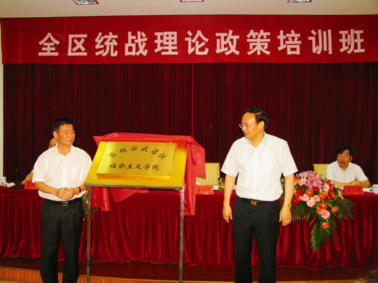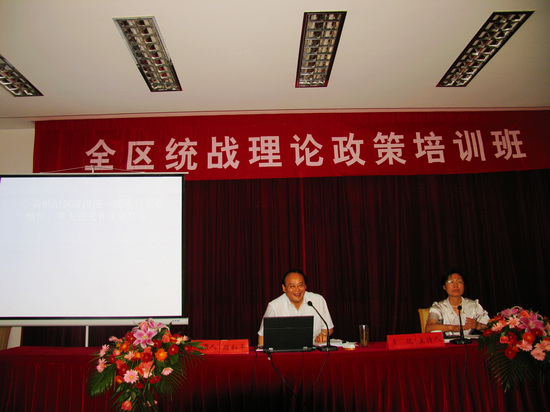 揭牌仪式结束后,周和平为武进区统战理论政策培训班全体学员作了《新世纪新阶段统一战线方针政策》的辅导报告。