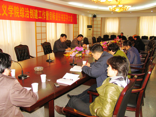 3月18日下午,我院召开综治创建工作暨目标责任书签字大会。副院长唐旭明和院综治领导小组全体成员参加了会议。