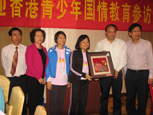 欢迎仪式(左三:香港宝血女子中学潘校长,左四:苏港青少年文化交流促进会陈慧钰女士)