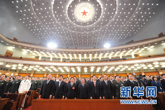 上午10时整,贾庆林宣布大会开始。全体起立,高唱中华人民共和国国歌。