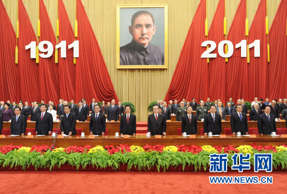 新华网北京10月9日电 纪念辛亥革命100周年大会9日上午在人民大会堂隆重举行。中共中央总书记、国家主席、中央军委主席胡锦涛出席大会并发表重要讲话。