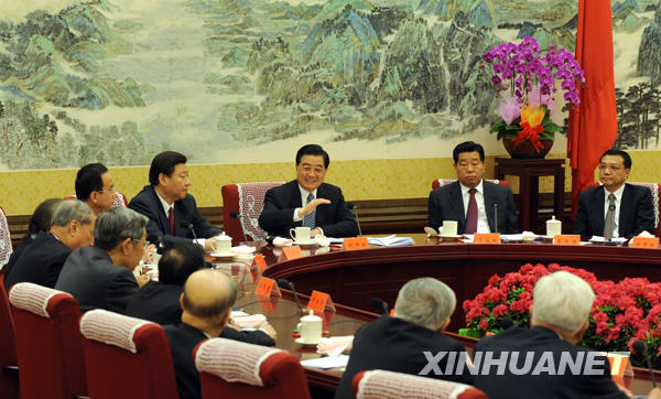 2月10日,中共中央在北京中南海召开党外人士迎春座谈会。中共中央总书记、国家主席、中央军委主席胡锦涛发表重要讲话。新华社记者 李学仁 摄