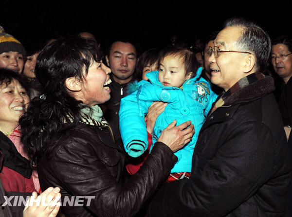 这是1月10日晚温家宝在南京市玄武区锁金三村看望居民。